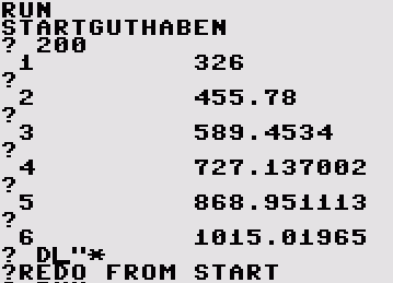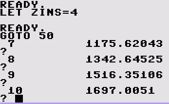 - Zeile 70: Dann wird Jahr und Guthaben auf den Bildschirm ausgegeben.