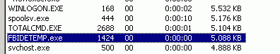 Wenn Sie dies ablaufen lassen, werden Sie erstaunt sein, wie schnell die Schleife über ihre 1 Million Runden hinwegrast. Bevor Sie danach mit dem Tastendruck das Fenster schliessen, können Sie mal in den Taskmanager gehen und sich dort den reservierten Speicher Ihres Programms anschauen. Dazu lassen Sie sich in der letzten Spalte den "virtuellen Speicher" anzeigen. Dann suchen Sie das Programm "FBIDEtemp.exe":