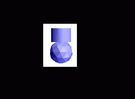 Das Ergebnis ist ganz nett, aber noch verbesserungsfähig. Nehmen wir an, das blaue Dingsda ist so etwas wie ein Raumschiff. Dann wäre es wünschenswert, wenn der weisse Kasten drumherum verschwinden würde. Aber wie dies anstellen? Nun gut, man kann im Malprogramm die Aussenfläche schwarz malen. Aber was ist, wenn der Hintergrund auf dem Bildschirm dann plötzlich rot ist? Der Kasten sollte durchsichtig sein. Das wär's. Freebasic hat mit solchen Durchsichtigkeiten keine grossen Probleme, aber die Grafik selbst darauf vorzubereiten, ist nicht ganz so einfach. Damit beschäftigen wir uns bald.
